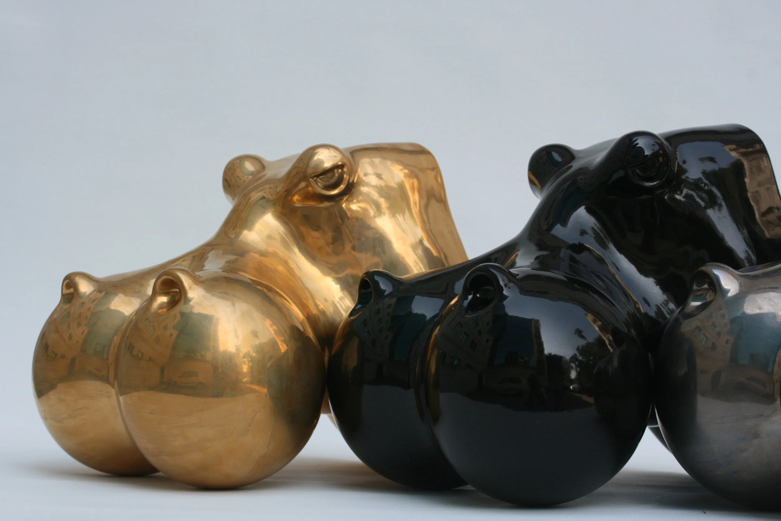 Jojo was created as a parody of animal head figures, which are still popular around the world and hang on walls to glory male courage in the hunt . The Hippos’ head sculpture was created out of a comic approach, using curved and soft shapes made of porcelain . Jojo the smiling Iconic hippo with it’s human-like glance, can find its place in every contemporary home on the wall or shelf.